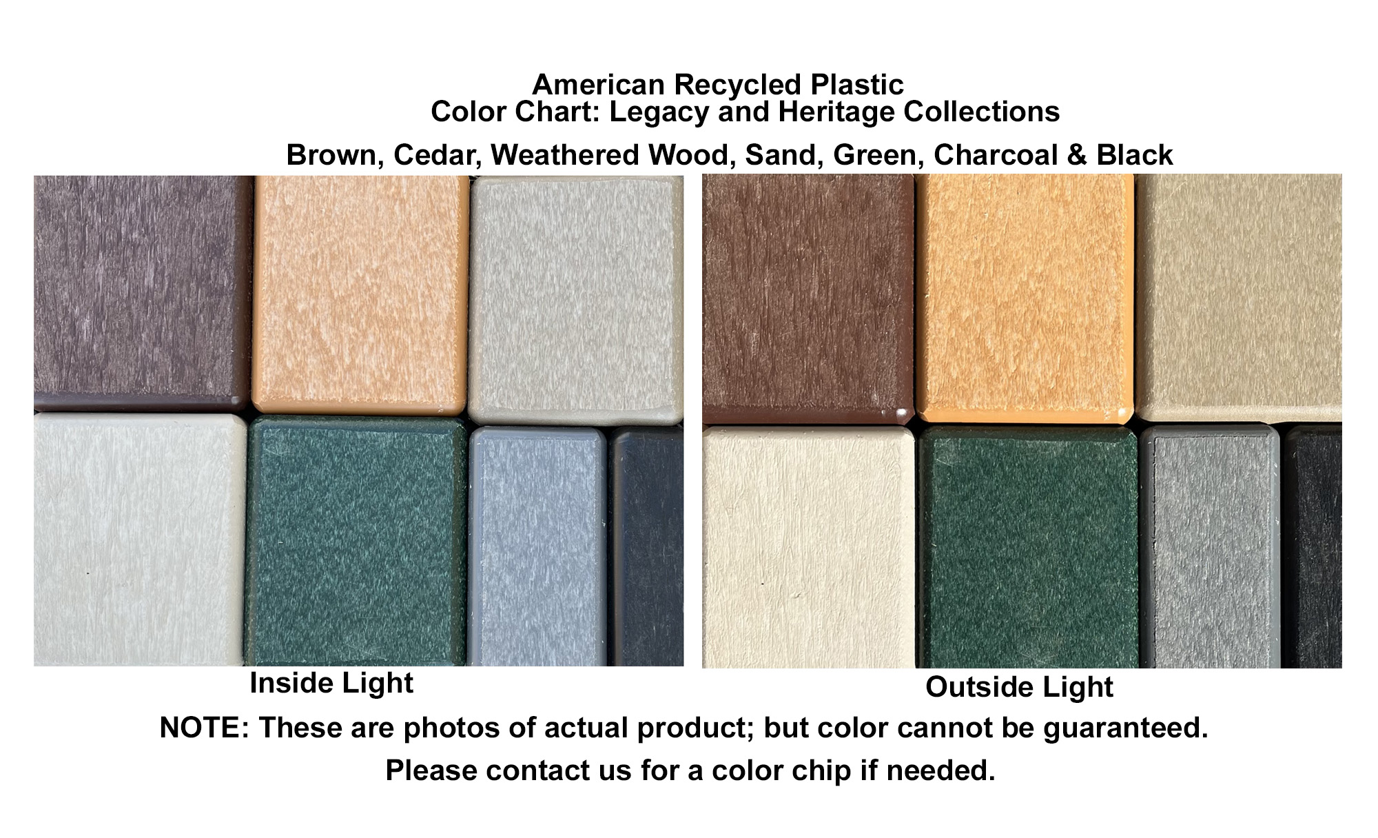 本宁顿公园有7种标准颜色:黑塞达、木炭、WeaedWood、Sand、Green或Brown
